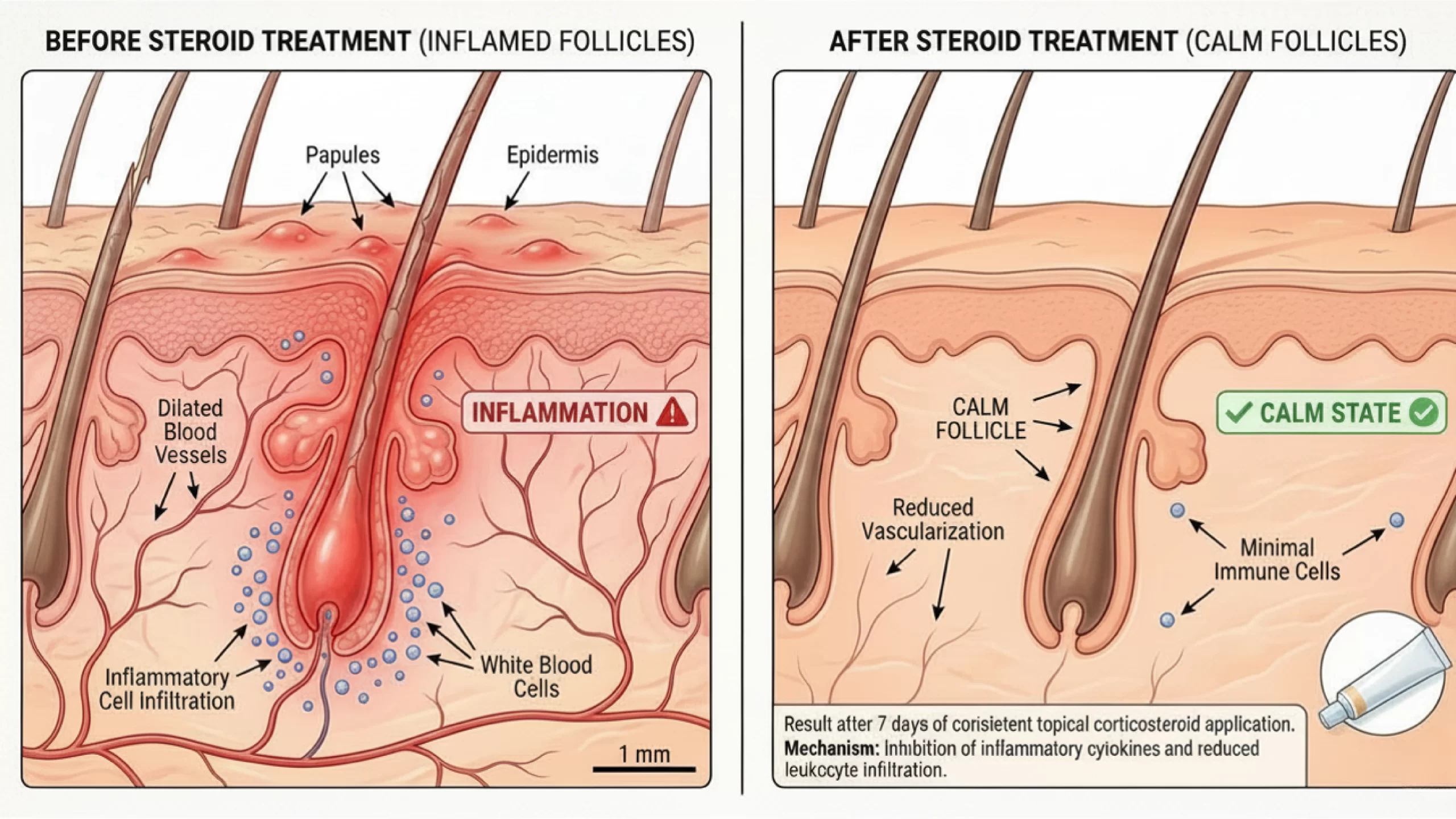 Steroids reduce this inflammation and help restore a normal environment around the follicle. When inflammation decreases, the follicle may re-enter the growth phase. This process supports hair regrowth, but only if the follicle remains viable.