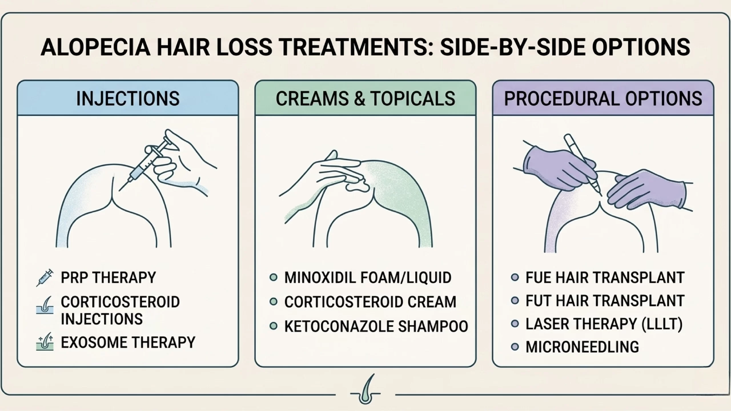 There is no single best treatment for all types of alopecia. Each condition has a different cause and requires a different approach. Steroid injections are one option among several, used mainly for inflammatory forms of hair loss.